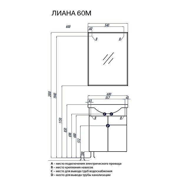 Тумба AQUATON Лиана 60М 1A162901LL010