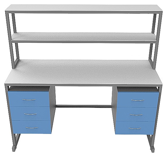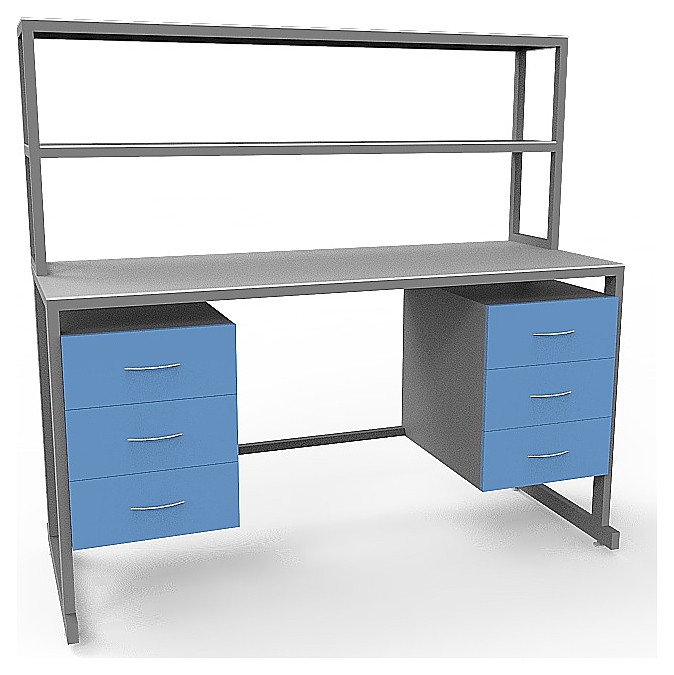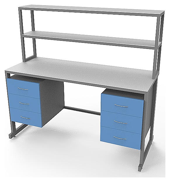 Стол лабораторный Мед Мебель СЛк 21.012 предназначен для установки в химических лабораториях для проведения различных исследований и анализов. Модель оснащена надстройкой с 2 полками, 2 тумбами под столешницей, с 3 выдвижными ящиками - каждая, и регулируемыми по высоте ножками за счет винтовых опор-регуляторов. Столешница из керамогранита устойчива к воздействию агрессивных химических веществ, устойчива к резким перепадам температур и удароустойчива. Каркас обеспечивает жесткость и прочность конструкции. Столешница выполнена из керамогранита, каркас - из стального профиля, покрытого порошковой краской. Особенности: