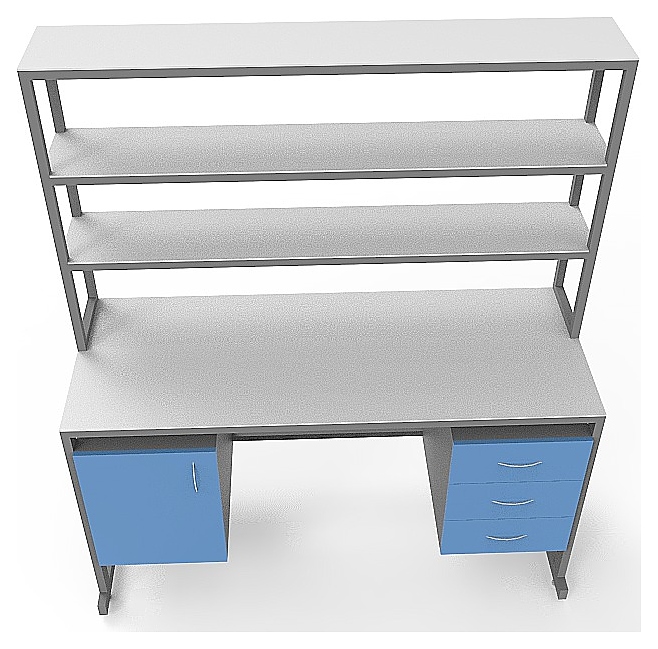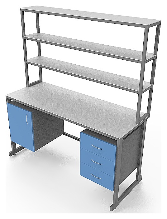Стол лабораторный Мед Мебель СЛк 21.016 предназначен для установки в химических лабораториях для проведения различных исследований и анализов. Модель оснащена надстройкой с 2 полками, 2 тумбами под столешницей, левая - с распашной дверцей, правая - с 3 выдвижными ящиками, и регулируемыми по высоте ножками за счет винтовых опор-регуляторов. Столешница из керамогранита устойчива к воздействию агрессивных химических веществ, устойчива к резким перепадам температур и удароустойчива. Каркас обеспечивает жесткость и прочность конструкции. Столешница выполнена из керамогранита, каркас - из стального профиля, покрытого порошковой краской. Особенности: