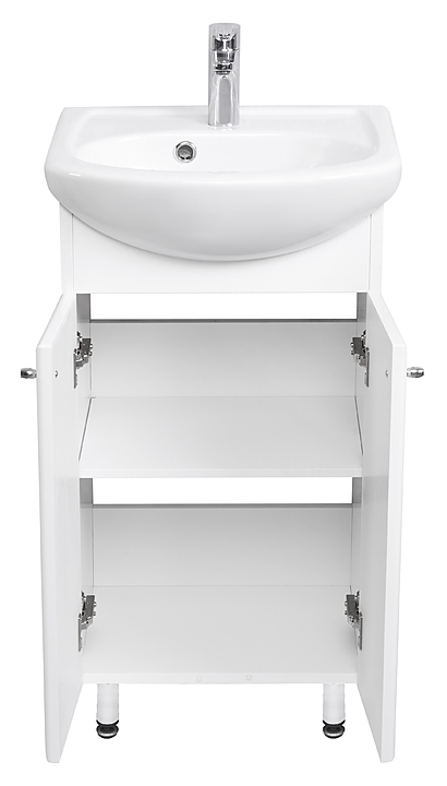 Тумба AQUATON Мира 45Н 1A104401MR010 выполнена в современном стиле. Напольная конструкция обеспечивает легкий монтаж и не требует специального ремонта в помещении. Модель оснащена распашными фасад-створками, за которыми находится регулируемая по высоте полка. Корпус изделия выполнен из влагостойкой ЛДСП, а фасад из высококачественной МДФ и окрашены белоснежной глянцевой полиэфирной краской ультрафиолетового отверждения, которая обеспечивает изделию привлекательный внешний вид, а также износостойкость и долговечность. Тумба используется вместе с раковиной Акванью 45 1WH110150. Комплектация: