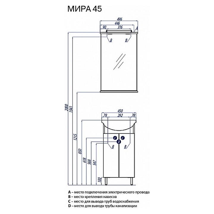 Тумба AQUATON Мира 45Н 1A104401MR010