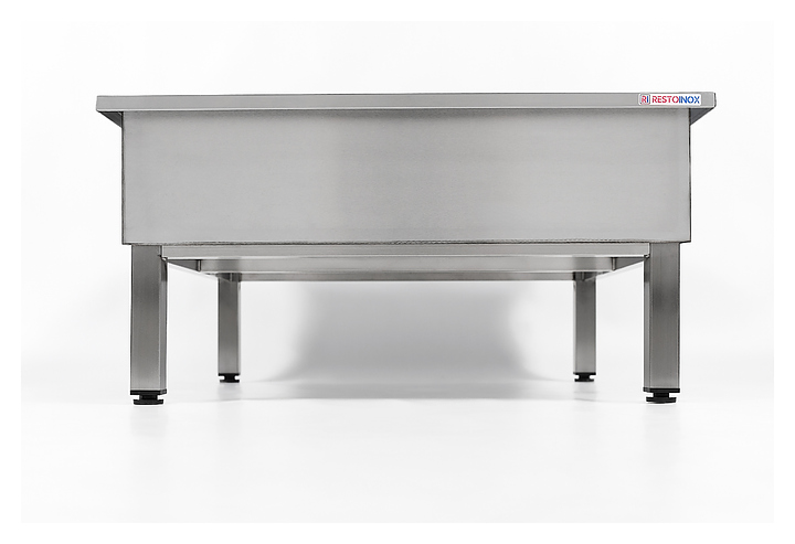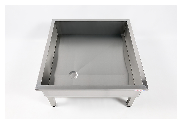 Моповая ванна Restoinox ВММ-1/5 используется на предприятиях общественного питания и торговли для мытья и дезинфекции уборочного инвентаря. Модель оснащена регулируемыми по высоте пластиковыми опорами. Ножки выполнены из квадратной трубы 40х40 мм из нержавеющей стали Aisi 430, емкость - из нержавеющей стали AISI 430. Особенности: