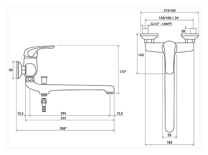 Смеситель для ванны и душа настенный Ravak Rosa RS 051.00/150