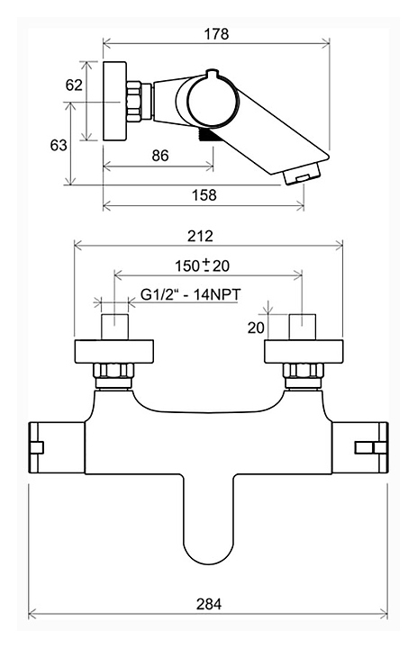 Смеситель для ванны и душа настенный термостатический Ravak TE 022.00/150
