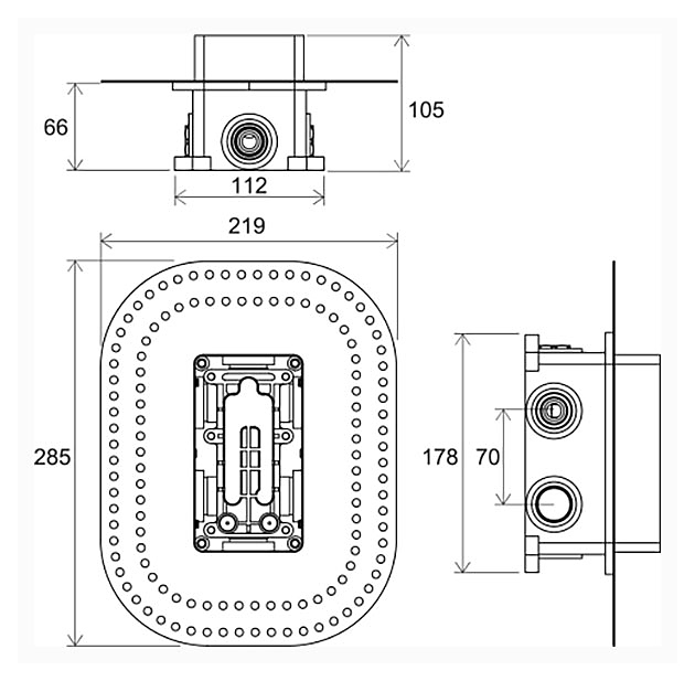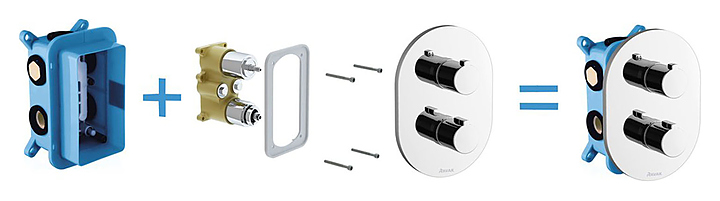 Механизм скрытого монтажа Ravak R-box Multi-RB 071.50 предназначен для монтажа термостатического многофункционального смесителя скрытого монтажа Chrome CR 067.00, встроенного в стену. Модель сводит к минимуму риск повреждения смесителя скрытого монтажа при монтаже или неправильной установке на гипсокартон или классическую кирпичную стену. Работа по установке основного корпуса менее трудоемкая, более быстрая и результат ее значительно лучше. Пластиковый корпус защищает внутреннюю часть смесителя при встраивании в стену, а также облегчает все манипуляции. Механизм скрытого монтажа используется вместе со смесителем Chrome CR 067.00. Особенности: