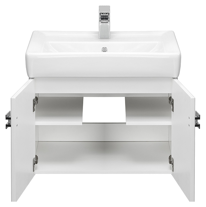 Тумба AQUATON Оптима 70 1A124101OP010 выполнена в современном стиле. Благодаря подвесной конструкции изделие не занимает много места и обеспечивает легкую уборку в ванной комнате. Модель оснащена распашными фасад-створками, за которыми находятся полки. Корпус выполнен из влагостойкой ЛДСП, а фасады из высококачественной МДФ и окрашены белой краской ультрафиолетового отверждения, которая обеспечивает изделию привлекательный внешний вид, а также износостойкость и долговечность. Тумба используется вместе с раковиной Тигода 70 1WH302083. Комплектация: