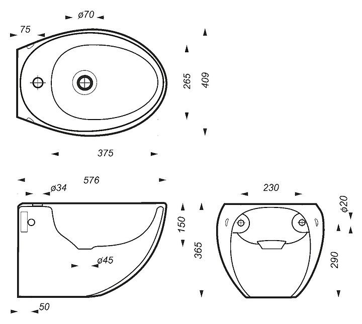 Биде подвесное SANITA LUXE Ringo RNGSLBI01