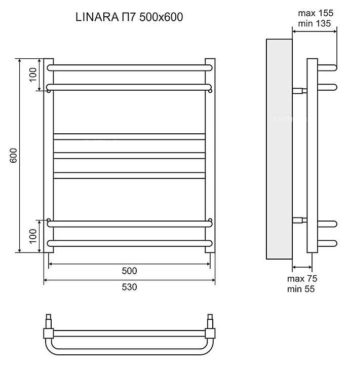 Полотенцесушитель водяной LEMARK Linara П7 LM04607 50x60 см, хром, нерж. сталь