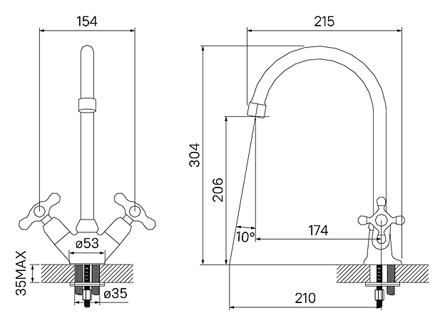 Смеситель для кухни IDDIS JEALS 59000T4C+W04 выполнен в классическом стиле и используется для подачи и смешивания горячей и холодной воды. Модель устанавливается на кухонную мойку, оснащена 2 эргономичными вентилями, характеризующимися плавной работой и поворотным изливом. Силиконовый аэратор Neoperl® легко очищается от ржавчины и известковых отложений. Изделие выполнено из высококачественной латуни, которая отличается прочностью, долговечностью и устойчивостью к перепадам температур, с устойчивым к износу и эрозии комбинированным покрытием, благодаря которому не теряет презентабельный вид. В комплект поставки входит гибкая подводка, крепеж. Особенности: