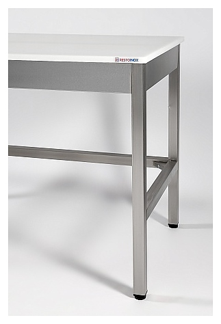 Производственный стол Restoinox СПП-10/7-О предназначен для обработки продуктов питания, раскатки теста и хранения кухонного инвентаря, также для размещения малогабаритного оборудования на предприятиях общественного питания и торговли. Модель оснащена регулируемыми по высоте опорами и трехсторонней обвязкой. Ножки выполнены из квадратной трубы 40х40 мм из нержавеющей стали Aisi 430, дополнительно усилены металлическими пластинами толщиной 1 мм, обвязка - из нержавеющей стали Aisi 430, столешница - из полипропилена. Особенности:
