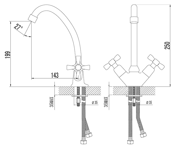 Смеситель LEMARK Benefit LM2504C предназначен для использования в кухонных помещениях для подачи горячей и холодной воды. Серия Benefit выполнена в традиционном стиле. Модель оснащена керамической кран-буксой для бесшумного смешивания холодной и горячей воды, а также аэратором для создания мягкой ровной струи без разбрызгивания. Изделие выполнено из высококачественной латуни, которая отличается прочностью, долговечностью и устойчивостью к перепадам температур. В комплект поставки входят крепления, гибкая подводка и аэратор. Особенности: