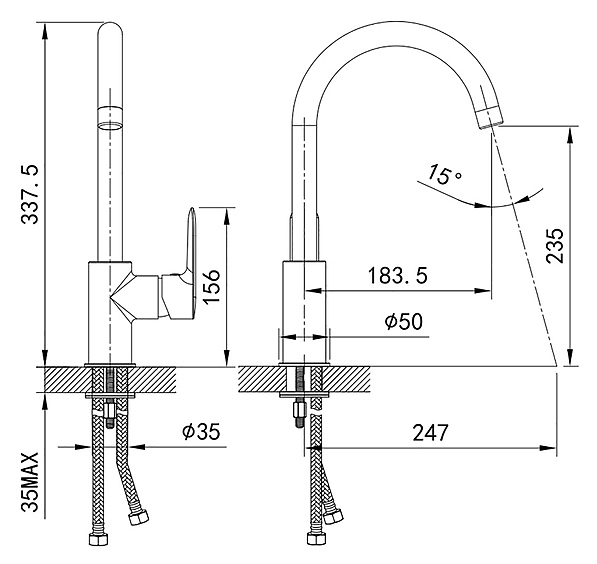 Смеситель для кухни IDDIS CUBA CU1BNJ0i05 выполнен в классичском стиле и используется для подачи и смешивания горячей и холодной воды. Модель устанавливается на кухонную мойку, оснащена эргономичным рычагом, характеризующимся плавной работой и поворотным изливом. Однозахватный тип управления позволяет очень быстро и плавно регулировать подачу воды одной рукой. Силиконовый аэратор Neoperl® легко очищается от ржавчины и известковых отложений. Изделие выполнено из высококачественной латуни, которая отличается прочностью, долговечностью и устойчивостью к перепадам температур, с устойчивым к износу и эрозии комбинированным покрытием, благодаря которому не теряет презентабельный вид. В комплект поставки входит гибкая подводка, крепеж. Особенности: