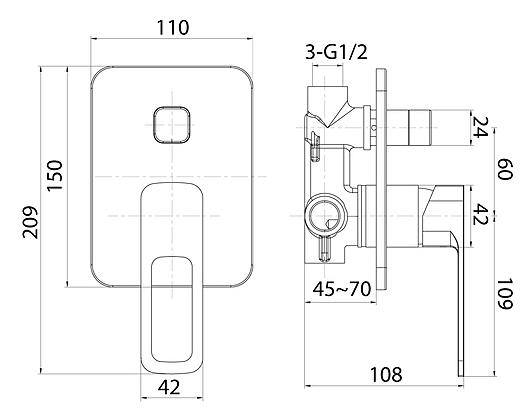 Смеситель для душа настенный IDDIS SLIDE SLIBL00i67 выполнен в стиле модерн и используется для подачи воды. Подключается на выбор к двум душевым аксессуарам. Благодаря скрытому монтажу в стену и отсутствию больших выступающих элементов конструкции экономит пространство комнаты и упрощает уборку. Модель оснащена рычагом удобной для захвата формы, характеризующимся плавной работой и поворотным дивертором. Изделие выполнено из высококачественной латуни, которая отличается прочностью, долговечностью и устойчивостью к перепадам температур, с устойчивым к износу и эрозии покрытием, благодаря которому не теряет презентабельный вид. Особенности: