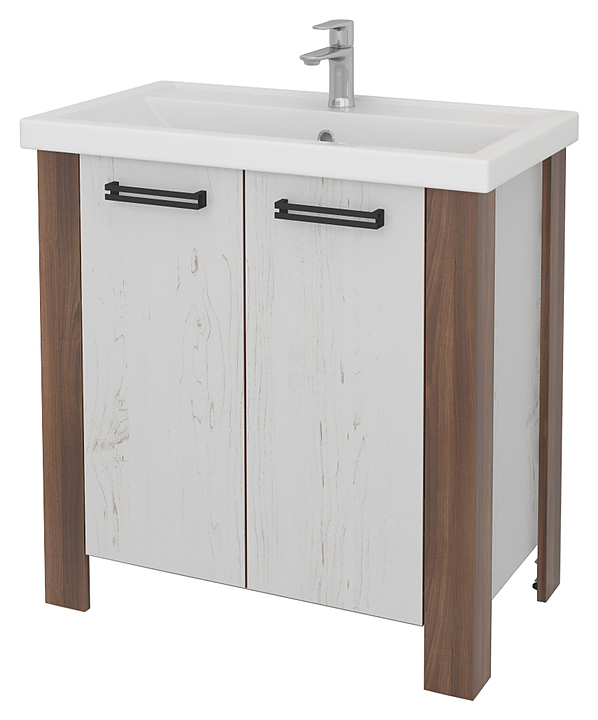 Тумба КАКСА-А Лидер 004596 выпонена в современном, лаконичном стиле и подходит для любого интерьера. Изделие устанавливается на ножки, что позволяет защитить конструкцию от воздействия влаги в случае намокания пола, а также облегчает уборку. Модель оснащена тремя полками для хранения ванных принадлежностей и проходными вертикальными стойками, опирающимися на скрытые угловые опоры, что позволяет отрегулировать тумбу на неровном полу. Фасады и корпус изделия выполнены из ламинированной ДСП с древесной текстурой, которая отличается долговечностью и экологичностью, а также предохраняет от загрязнения и защищает от влаги, стойки облицованы декоративным кромочным пластиком толщиной 2 мм. Тумба используется вместе с раковиной Фостер 800 004123. Особенности: