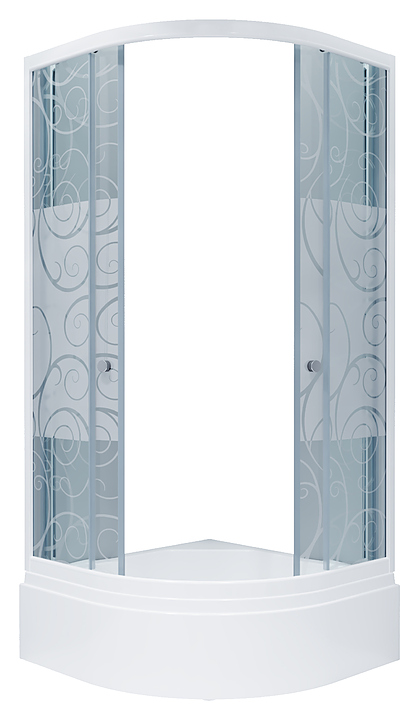 Душевой уголок Triton Узоры 90*90 В предназначен для использования в ванных комнатах. Благодаря угловой конструкции и поддону в форме четверти круга модель можно вписать даже в ванные комнаты небольшой площади. Кабина оснащена 2-х секционными раздвижными дверцами, а поддон с антискользящим покрытием для безопасности. Профиль выполнен из алюминия, который устойчив к окислению и появлению коррозии, обеспечивает герметичность и легкость конструкции. Поддон выполнен из акрила, устойчивого к механическим повреждениям, обладающего небольшим весом и повышенной шумоизоляцией. Комплектация:
