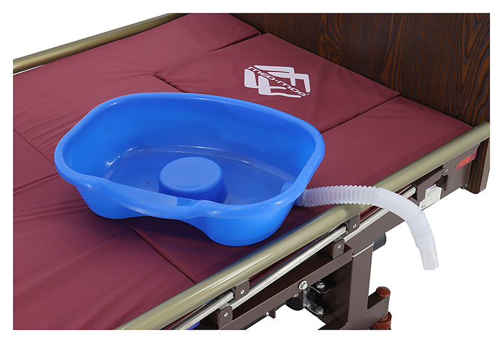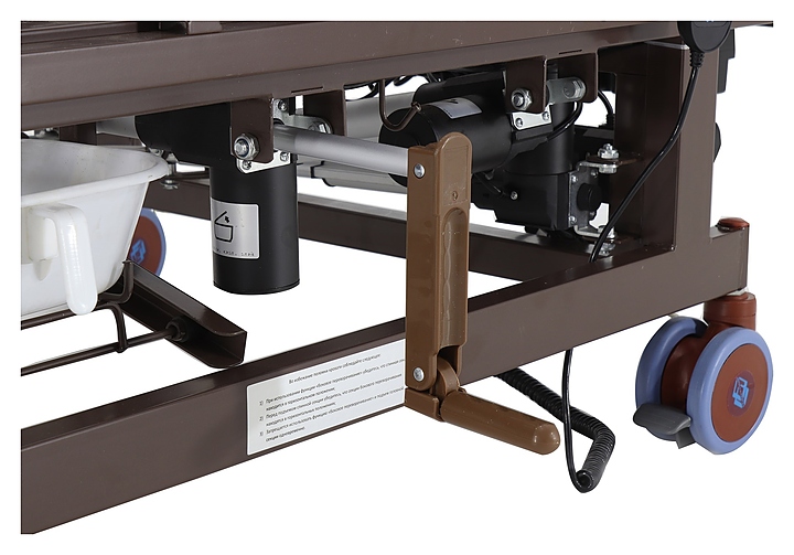 Медицинская кровать электрическая Med-Mos DB-11А (МЕ-5228Н-10) с РУ используется в учреждениях здравоохранения для более комфортного пребывания в больнице лежачих больных с проблемами опорно-двигательного аппарата и пациентов, которые проходят процесс реабилитации после перенесенных операций или тяжелых заболеваний. Модель оснащена пластиковыми заглушками на опорных стойках и индикатором режима работы на пульте управления пациента. Ложе, каркас, опоры и боковые ограждения выполнены из сварных конструкций из профильных труб из высокопрочной стали, покрытых ударопрочной эпоксидной эмалью, колеса - из полиуретана, дуга для подтягивания и инфузионная стойка - из нержавеющей стали с элементами из пластика, накроватный столик - из ударо-термостойкого пластика, матрас - из ППУ и ПВХ. Кровать поставляется с регистрационным удостоверением Минздрава РФ. Комплектация: