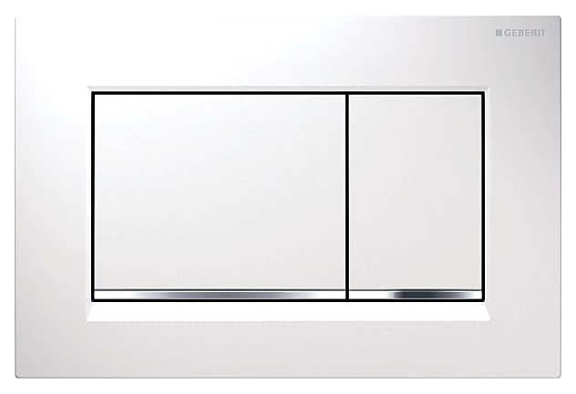 Кнопка смыва Geberit Sigma30 115.883.KJ.1 предназначена для установки с инсталляциями для подвесных унитазов Geberit. Аксессуар прямоугольной формы с двойной клавишей, непосредственно приводящей в действие экономный механизм большого и малого смыва для рационального расхода воды. Модель выполнена из пластика. В комплект поставки входят монтажная рама, 2 толкателя привода смыва, 2 держателя крепления рамки. Особенности: