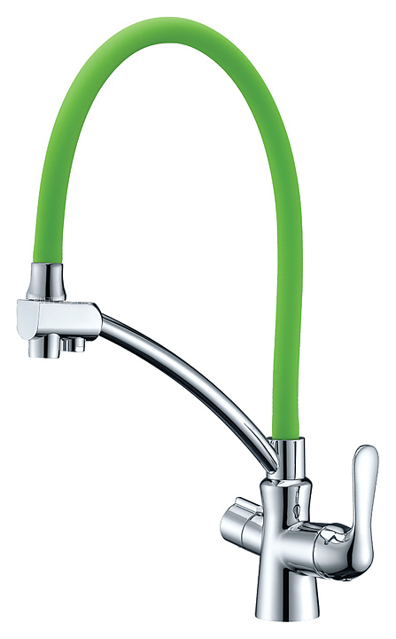 Смеситель для кухни LEMARK Comfort LM3070C-Green с гибким изливом, с подключением к фильтру питьевой воды, хром/зеленый