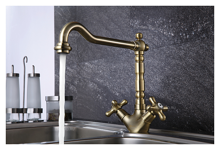 Смеситель для кухни LEMARK Vintage LM2805B с высоким поворотным изливом, бронза