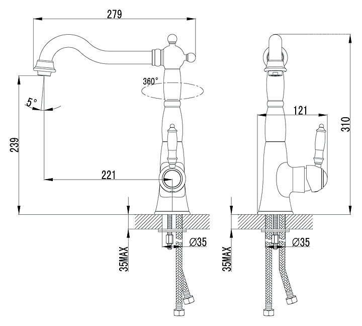 Смеситель LEMARK Villa LM4805B предназначен для использования в кухонных помещениях для подачи горячей и холодной воды. Серия Villa выполнена в стиле ретро. Модель оснащена керамическим картриджем, обеспечивающим плавный ход рычага смесителя, контроль и точность при выборе напора и температуры воды. Изделие выполнено из высококачественной латуни, отличающейся прочностью, долговечностью и устойчивостью к перепадам температур. В комплект поставки входят крепления, гибкая подводка и аэратор. Особенности:
