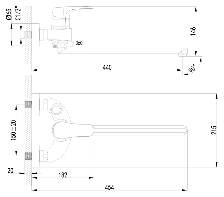 Смеситель для ванны и душа LEMARK Shift LM4317C универсальный, с плоским изливом, хром