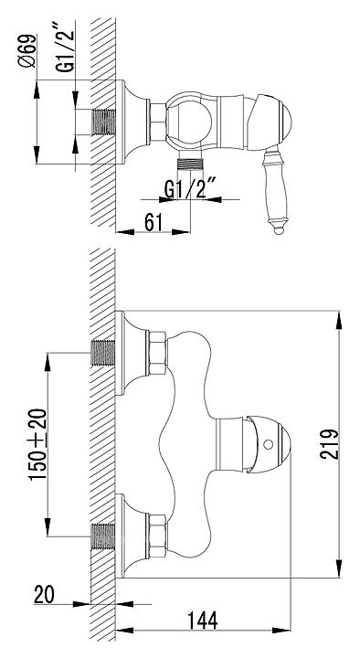 Смеситель для душа LEMARK Villa LM4803B предназначен для использования в ванных помещениях для подачи горячей и холодной воды. Серия Villa выполнена в стиле ретро. Модель оснащена душевым гарнитуром, включающим в себя однорежимную лейку, настенный держатель и полутораметровый шланг. Изделие выполнено из высококачественной латуни, отличающейся прочностью, долговечностью и устойчивостью к перепадам температур. В комплект поставки входят эксцентрики, настенный держатель, душевой шланг и душевая лейка Особенности: