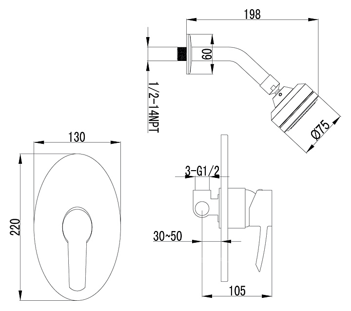 Смеситель для душа LEMARK Atlantiss LM3220C встраиваемый, с верхним душем, хром