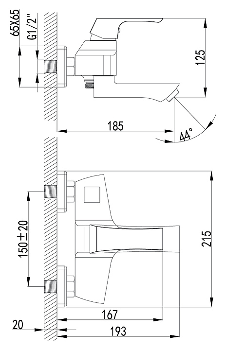 Смеситель для ванны и душа LEMARK Unit LM4514C с фиксированным плоских изливом, хром