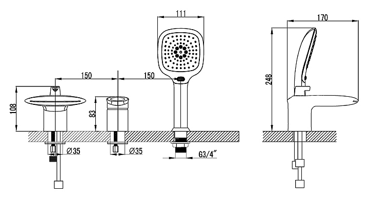 Смеситель для ванны и душа LEMARK Status LM4445C встраиваемый на борт ванны, 3 отверстия, хром