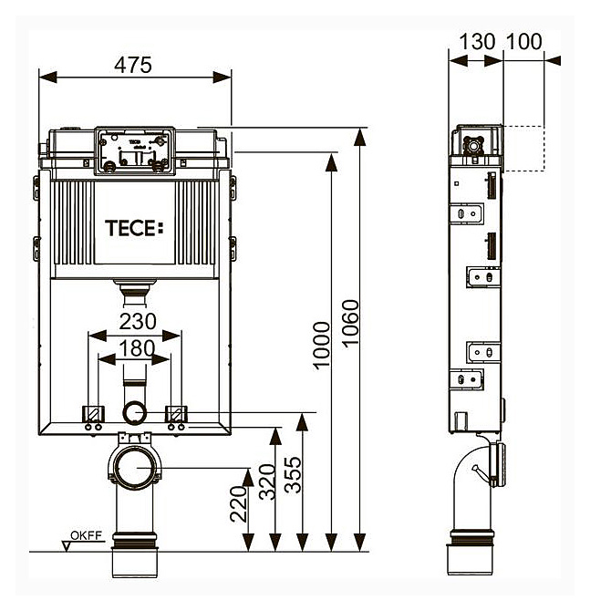 Система инсталляции с бачком TECE TECEbox предназначена для установки унитазов. Модель подходит для монтажа на кирпичах перед несущей стеной. Рама изготовлена из оцинкованной стали, устойчивой к коррозии и большим нагрузкам. Бачок выполнен из ударопрочного пластика, который отличается гигиеничностью, долговечностью и легким весом. Комплектация: