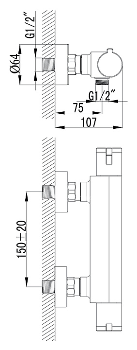 Смеситель для душа LEMARK Yeti LM7833C термостатический, без аксессуаров, хром
