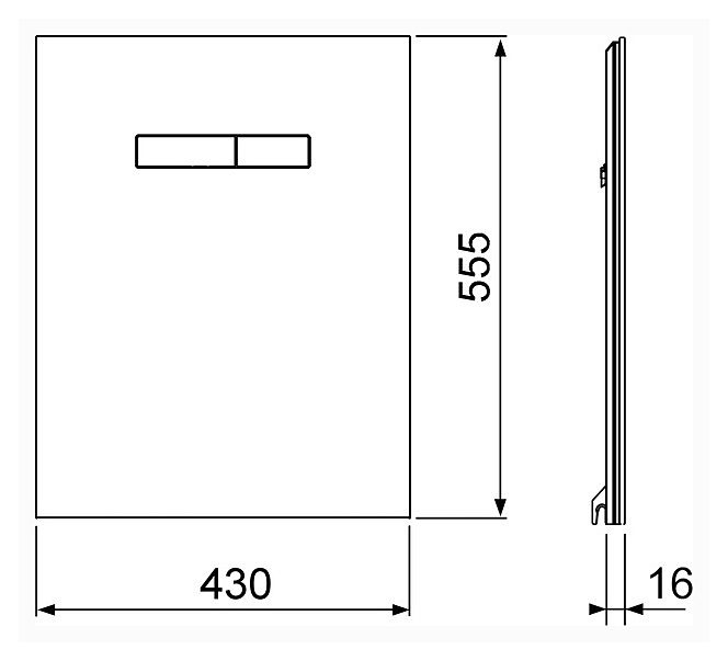 Кнопка смыва TECE TECElux предназначена для инсталляции унитазов. Аксессуар прямоугольной формы с двойной продолговатой клавишей, непосредственно приводящей в действие экономный механизм большого и малого смыва для рационального расхода воды. В комплект поставки входят толкатели и крепежные элементы. Особенности: