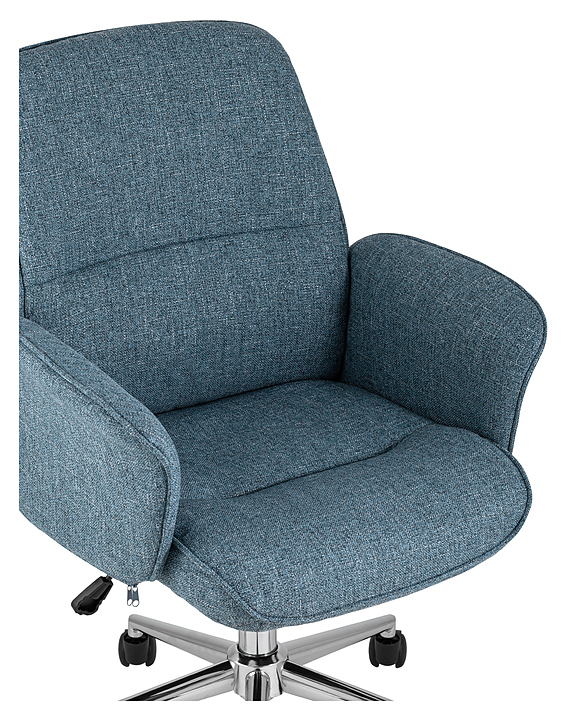 Офисное кресло Stool Group Comfort SIMONA голубой предназначено для долгой работы за компьютером на даче, дома, а также в офисах. Модель оснащена подлокотниками, механизмом качания TopGun, системой регулировки по высоте и эргономичной спинкой, которая позволяет провести в кресле долгое время без усталости. Каркас кресла изготовлен из металла, обивка из ткани. Дополнительные характеристики:
