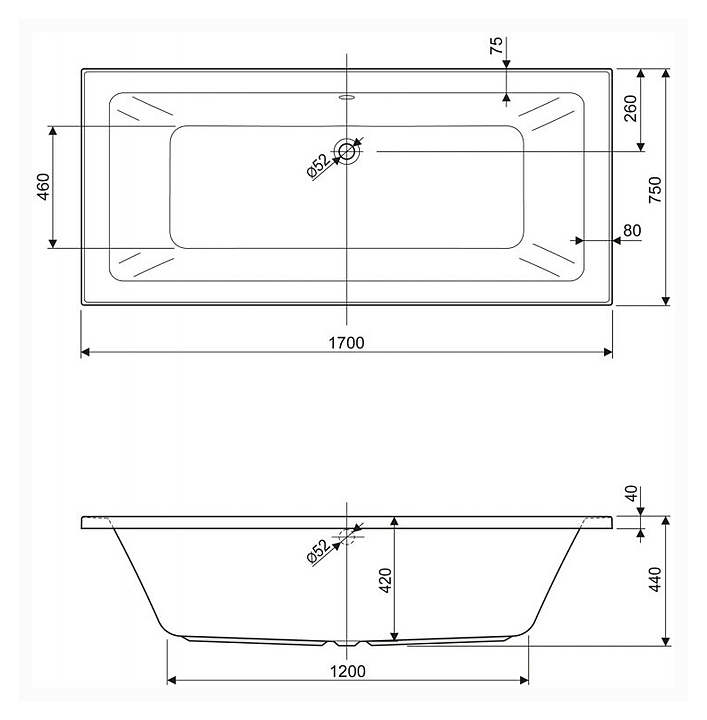 Ванна CEZARES PLANE MINI-170-75-42 170х75 см, акрил