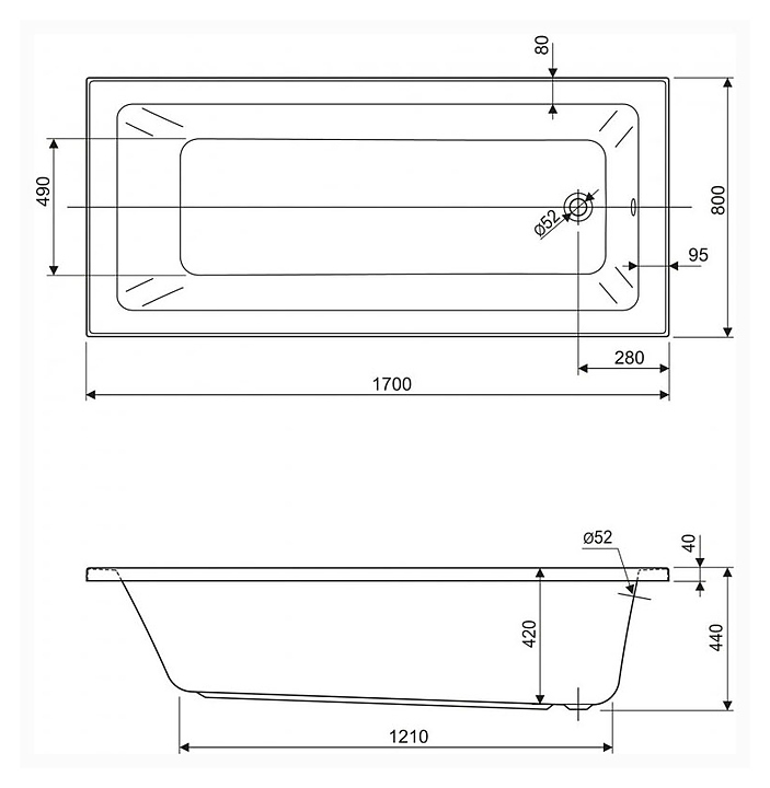 Ванна CEZARES PLANE SOLO MINI-170-80-42 170х80 см, акрил