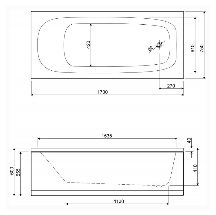 Ванна CEZARES ECO-170-75-41 170х75 см, акрил