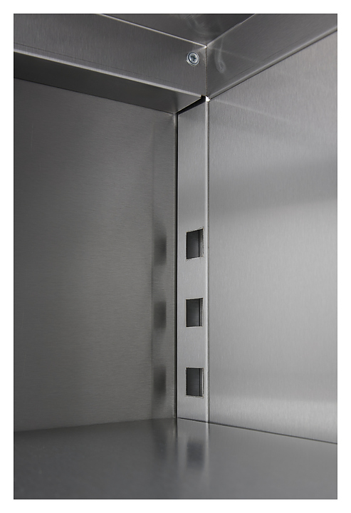 Кухонная полка Restoinox ПНО-9/3 предназначена для хранения посуды, инвентаря и сухих продуктов на предприятиях общественного питания и торговли. Разборный каркас и полка выполнены из нержавеющей стали AISI 430, задняя стенка - из нержавеющей стали. Дополнительные характеристики: