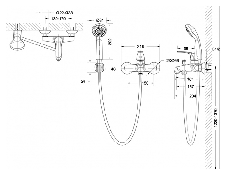 Смеситель для ванны с душем BRAVAT Fit F6135188CP-B-RUS с однофункциональной лейкой, хром