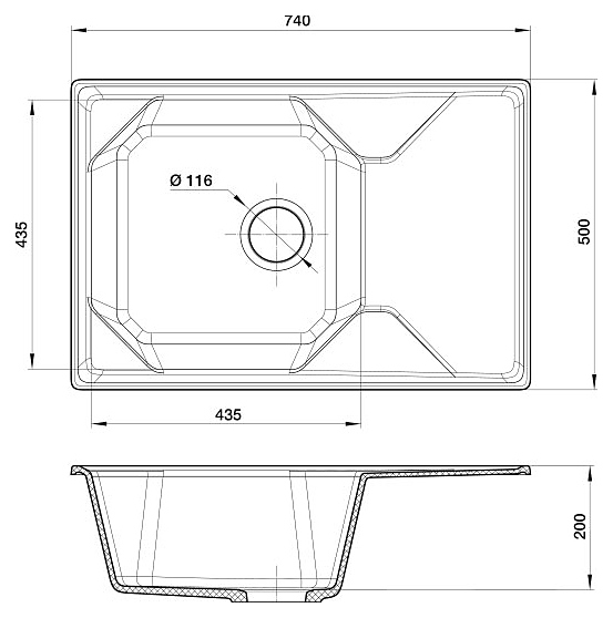 Кухонная мойка GranFest Unique GF-U-740L графит