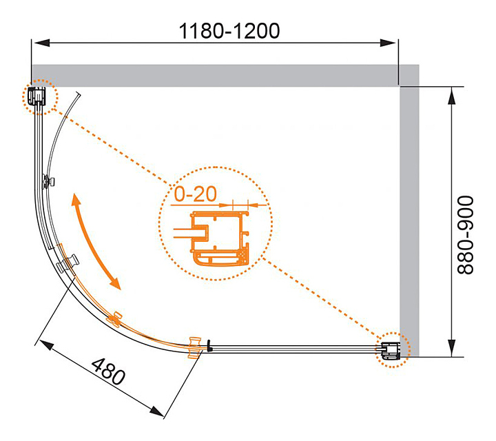 Уголок душевой CEZARES ANIMA-W-RH-1-120/90-P-Cr 120х90х200 см
