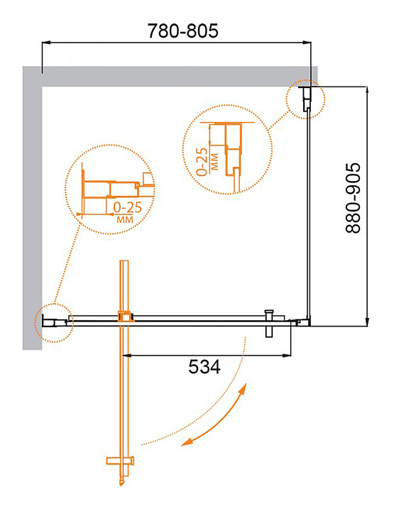 Уголок душевой CEZARES MOLVENO-AH-1-80/90-C-Cr-IV 80х90х195 см