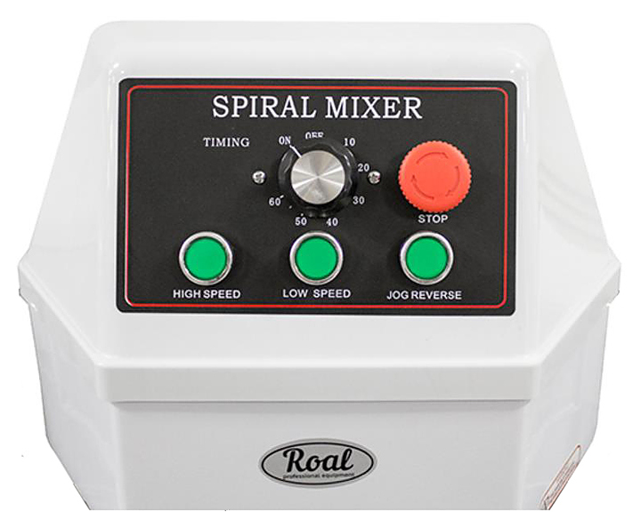 Спиральный тестомес Roal Bakery HS50А используется на предприятиях общественного питания и торговли для замешивания дрожжевого теста и смешивания различных пищевых продуктов. Модель оснащена механической панелью управления, ременной передачей и таймером. Особенности: