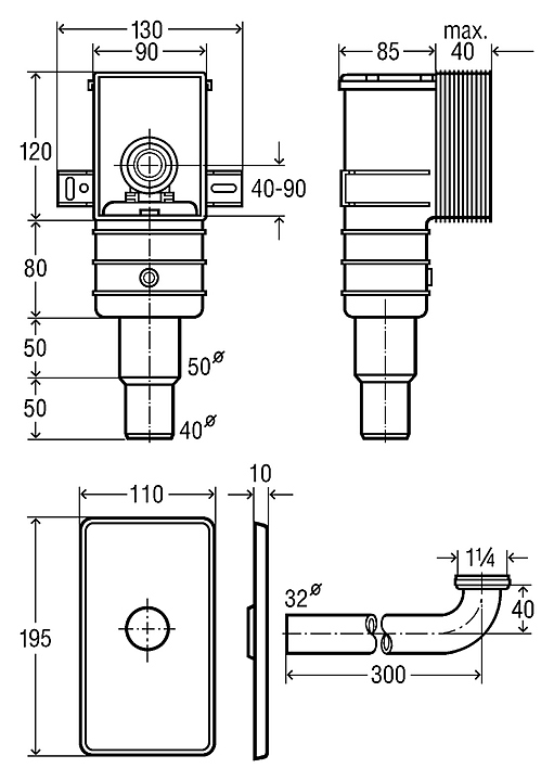 Сифон для скрытого монтажа Viega 553753 (гидрозатвор)