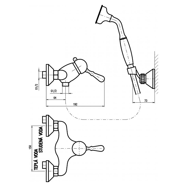 Смеситель для душа с душевым гарнитуром настенный RAV-SLEZAK LABE L081.5/2SM