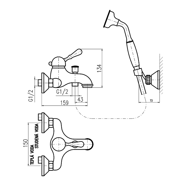 Смеситель для ванны и душа с душевым гарнитуром настенный RAV-SLEZAK LABE L554.5/2Z