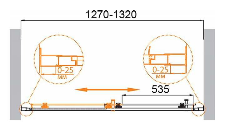 Дверь душевая CEZARES MOLVENO-BF-1-130-P-Cr 130х195 см, в нишу, раздвижная