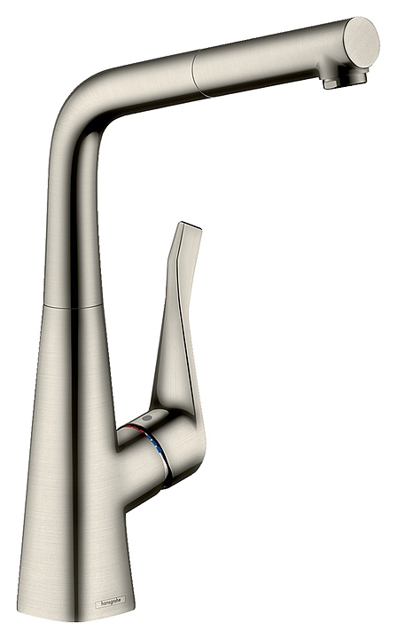 Смеситель для кухни Hansgrohe Metris 14821800 предназначен для использования в ванных помещениях для подачи горячей и холодной воды. Отличается современным дизайном, функциональностью и легким уходом. Модель оснащена керамическим картриджем, обеспечивающим плавный ход рычага смесителя, контроль и точность при выборе напора и температуры воды. Открытая форма рукоятки удобно ложится в руку. Особенности: