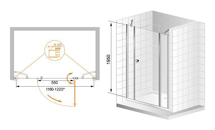 Дверь душевая CEZARES ELENA-W-B-13-30+60/30-P-Cr-R 120х195 см, в нишу, распашная
