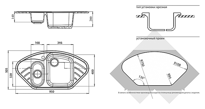 Кухонная мойка GranFest Corner GF-C-960E предназначена для установки в частных домах, квартирах, офисах, отелях, гостиницах и на различных предприятиях для мытья столовых принадлежностей, посуды, приборов, инвентаря и продуктов питания. Модель оснащена дополнительной раковиной. Изделие выполнено из мрамора, который устойчив к образованию пятен и воздействию высоких температур. Особенности:
