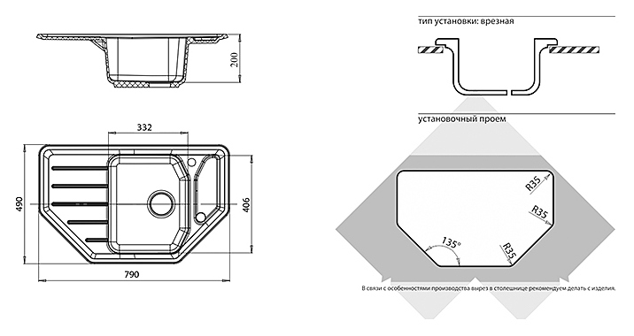 Кухонная мойка GranFest Corner GF-C-800E топаз
